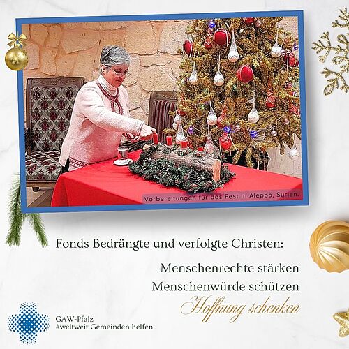 Weltweit bereiten sich Christinnen und Christen in der Adventszeit auf das Weihnachtsfest vor. Auch dort wo sie aufgrund ihres Glaubens bedrängt und verfolgt, ihre Rechte und Freiheiten eingeschränkt werden oder unter Krisen und Kriegen leiden.